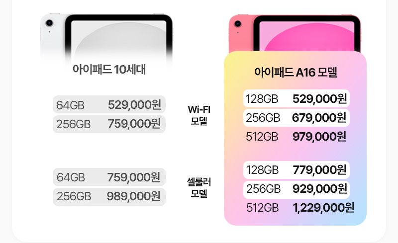 - 네이밍 변경 → 아이패드 10세대 → 아이패드 A16