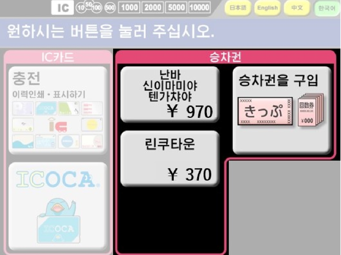 ✔️ 난바역 금액 확인후 지폐 투입하여 발매기에서 승차권을 구입한다.